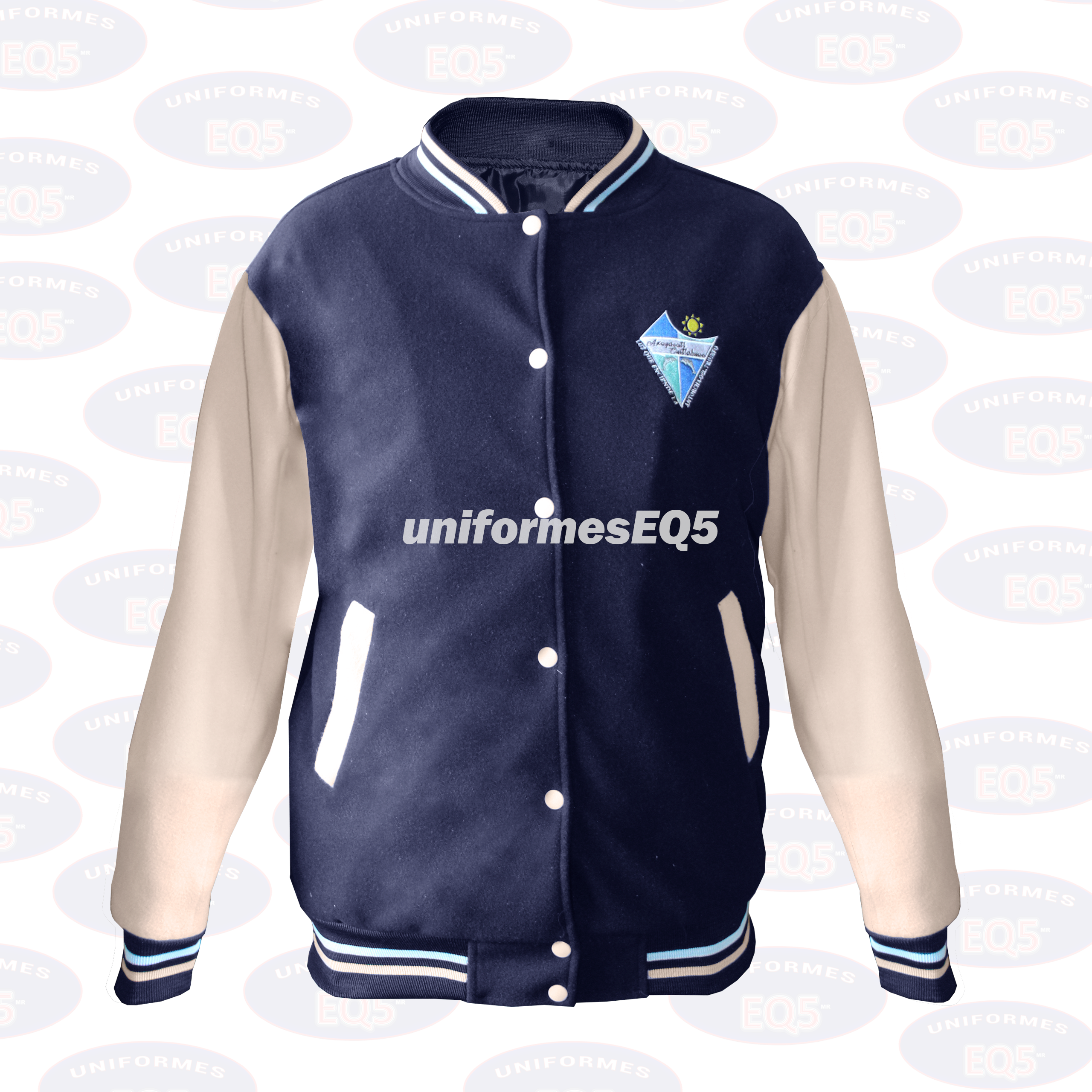 Chamarra universitaria en paño sintético de alta densidad, diseñada para ofrecer excelente presentación y abrigo ligero en un formato duradero. Este modelo está disponible según en el muestrario de telas y lo personalizamos totalmente a su gusto mediante bordado, DTF o serigrafía, adaptándonos fielmente a las necesidades de imagen de cada institución.