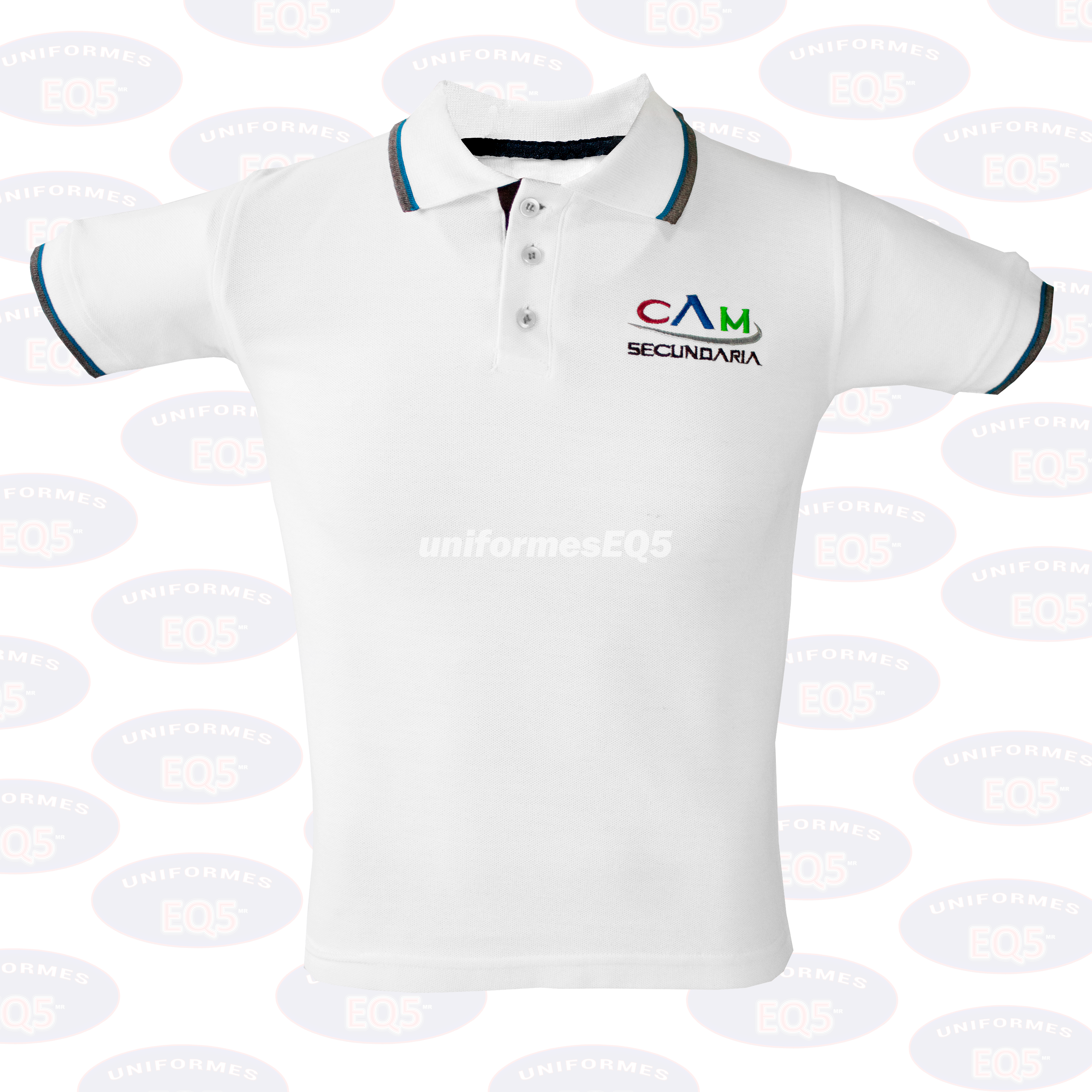 Playera tipo Polo con detalle de colores distintivos en el borde del cuello, que portan un toque elegante y representativo. Personalizable según los tonos y requerimientos de cada institución.