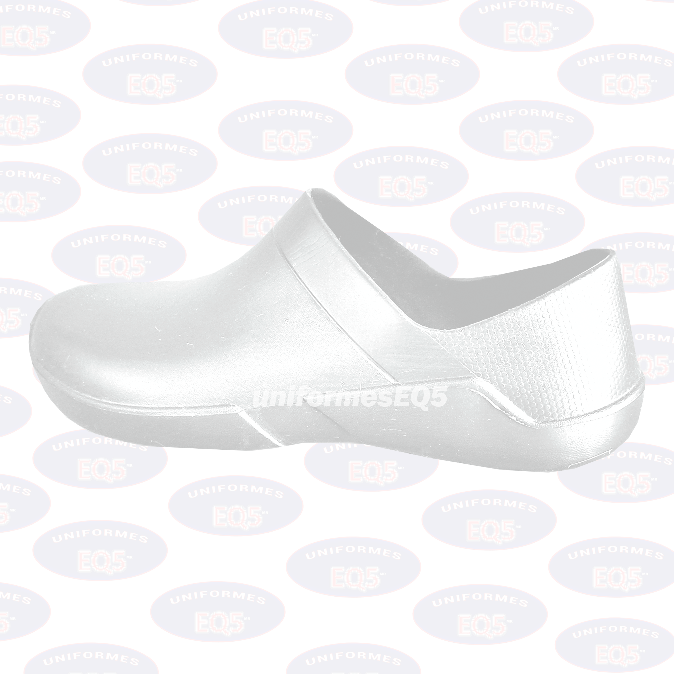 Calzado cerrado diseñado para máxima protección. Fabricado en material Etileno Vinilo Acetato (EVA) de alta resistencia, es increíblemente liviano. Cuenta con suela antiderrapante de alta tracción, ideal para jornadas largas en superficies húmedas o lisas. Color blanco clínico. º